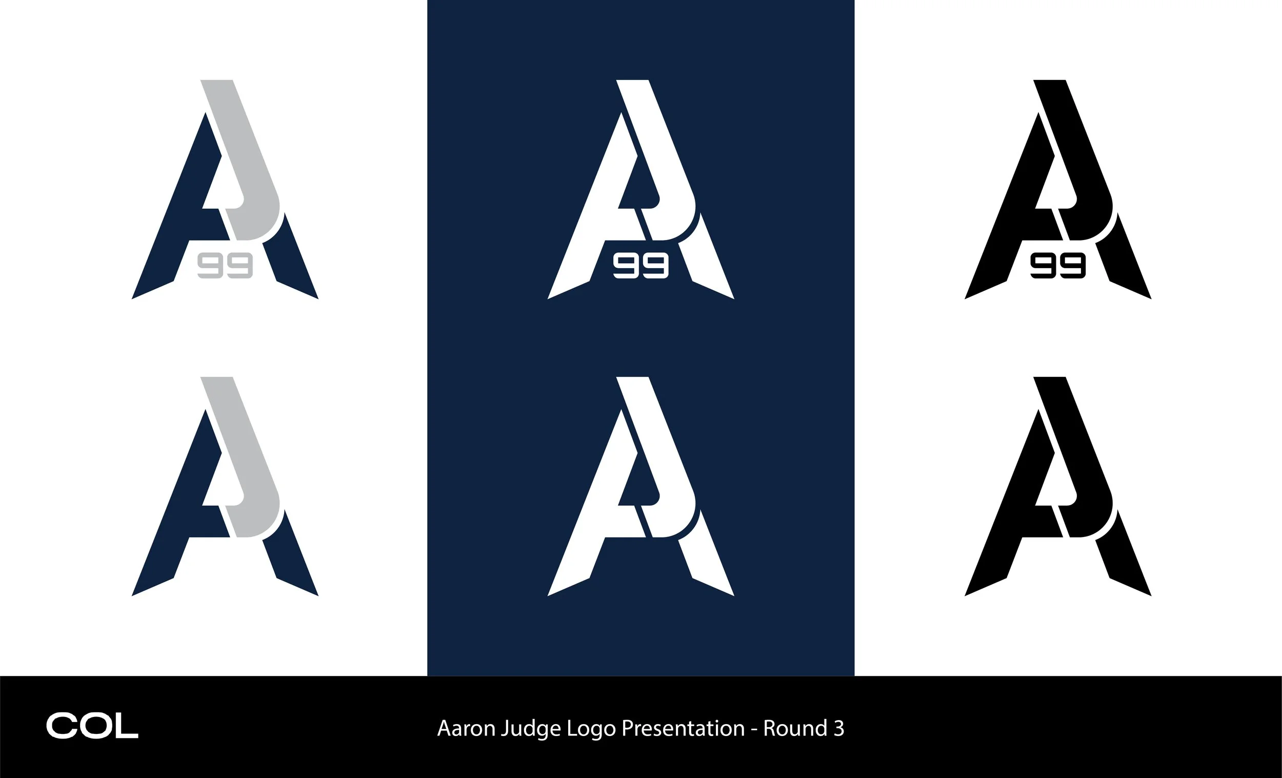 The creative brief given to me by Aaron Judge and his agent was to design a logo from his initials and include his number, 99. I wanted to make sure his logo would stand on its own in representing the man and player that Aaron Judge is, and not be dependent on his identity with the New York Yankees or the number he wears.
